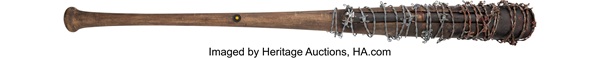ニーガン(ジェフリー・ディーン・モーガン)のワイヤーバット「ルシール」。『ウォーキング・デッド』シリーズを通して、「ルシール」はニーガンの凶暴で象徴的な武器として、シーズン6の登場からシーズン10まで使用された。シーズン10では、オリジナルの「ルシール」がついに粉砕された。