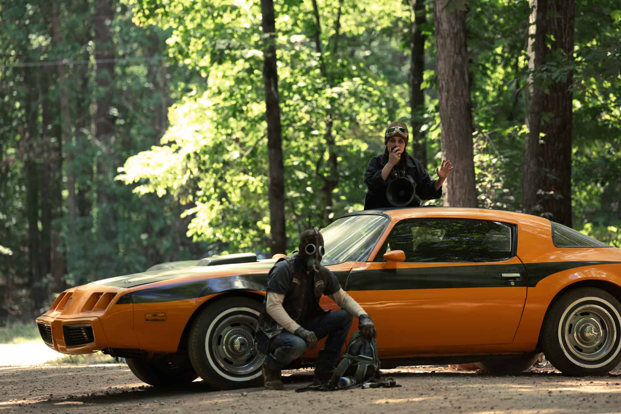 新たに解禁された場面写真では、見えない敵をめぐってお互いに不信感を抱くようになった家族とその周囲の仲間たちの姿や、“ガスマスク”を装備して警戒する登場人物たちの姿が。果たして広大な森で起こる謎の脅威とは何か?