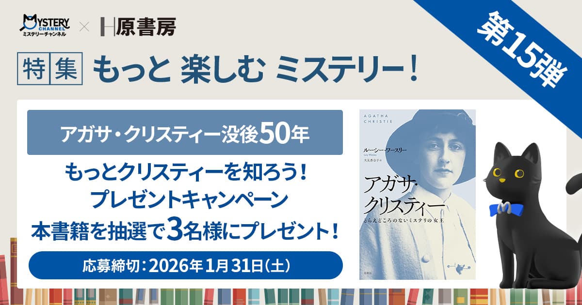 今回の特別編成を記念し、ミステリーチャンネルのWEBコンテンツ「もっと楽しむミステリー」では、プレゼントキャンペーンも実施される。クリスティーの生涯を紐解く書籍「アガサ・クリスティー とらえどころのないミステリの女王」が抽選で3名に当たるほか、編集者のインタビュー記事も掲載中。放送とあわせてチェックすれば、彼女の世界観をより多角的に楽しめるだろう。