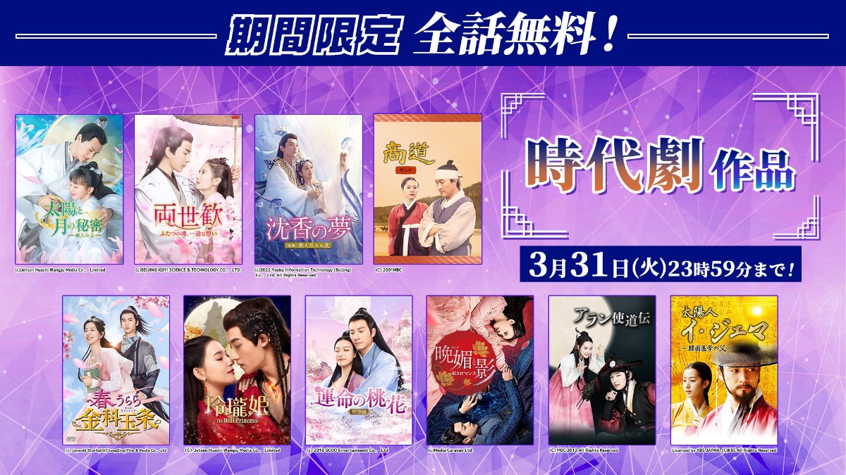 時代劇・宮廷ロマンス作品を期間限定全話無料配信中